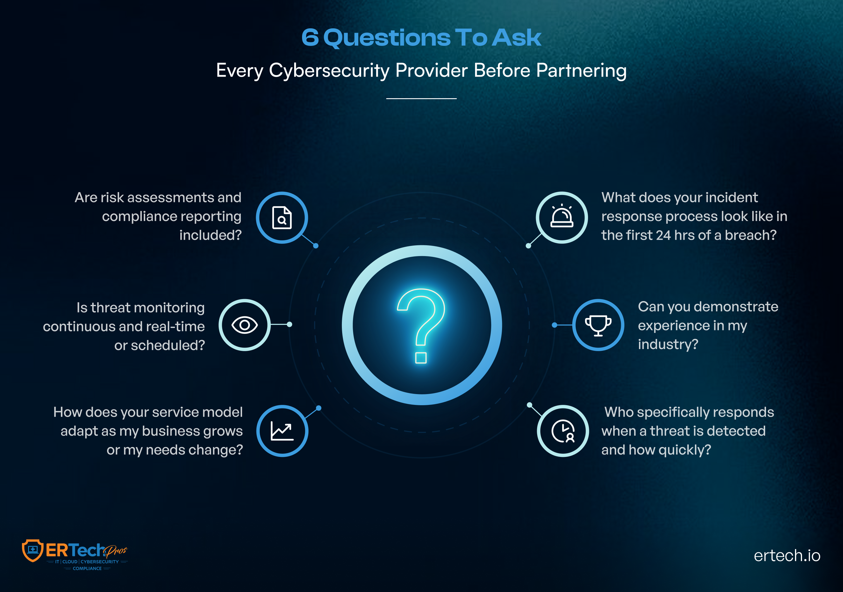 Request a risk assessment before any proposal: Any credible cybersecurity vendor will want to understand your current state before recommending solutions. A provider who skips that step is selling rather than protecting.